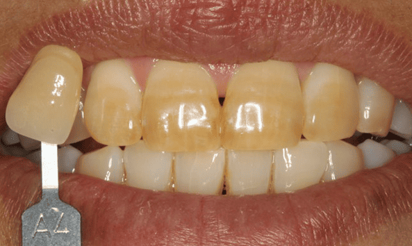 한층 한층 쌓아 올리는 레이어 쉐이드를 손수 작업하여 자연치아와 거의 유사한 치아색상을 재현합니다.